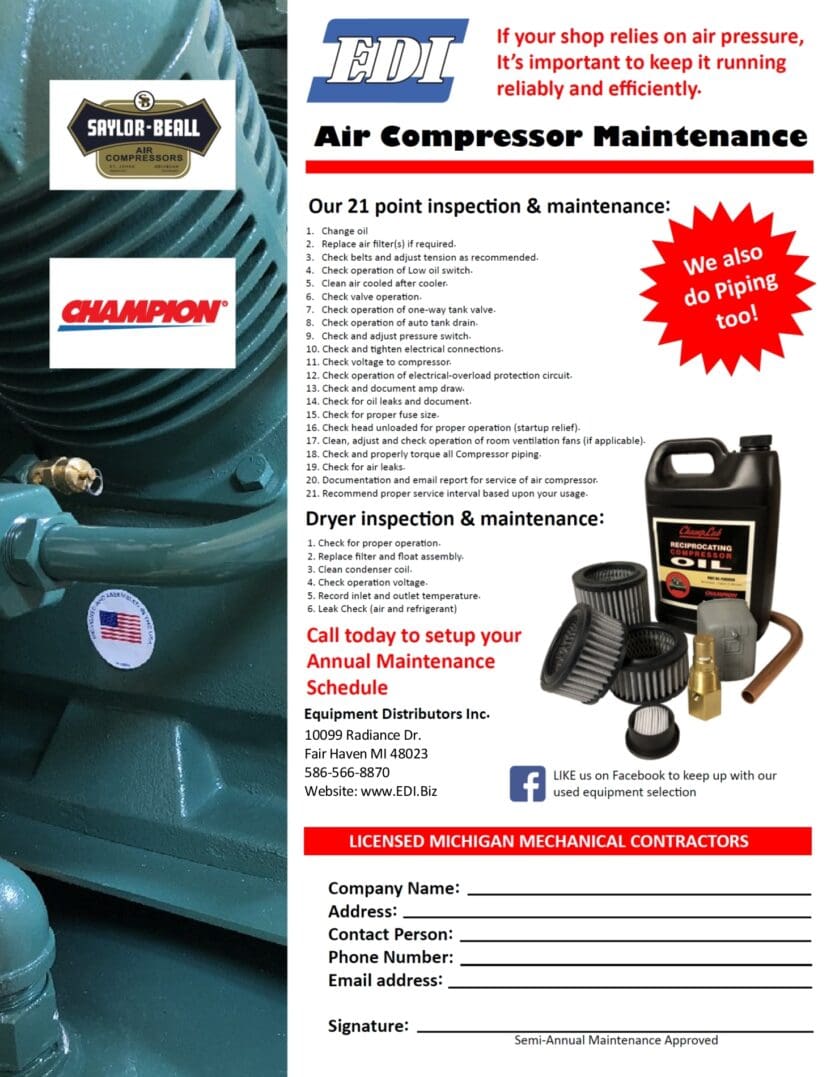 - Trusted Equipment: As Michigan’s leading supplier for Champion and Saylor-Beall air compressors and dryers, we deliver systems built for durability and efficiency.