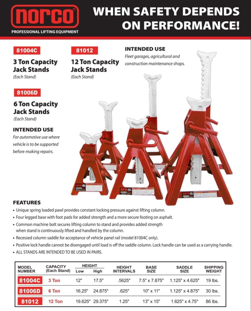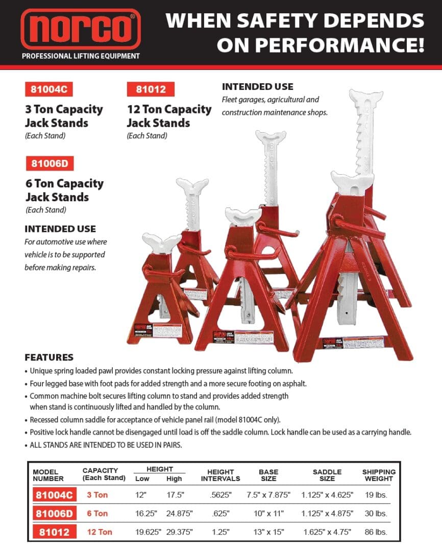 Jack Stands, 12 Ton (Norco: model 81012)