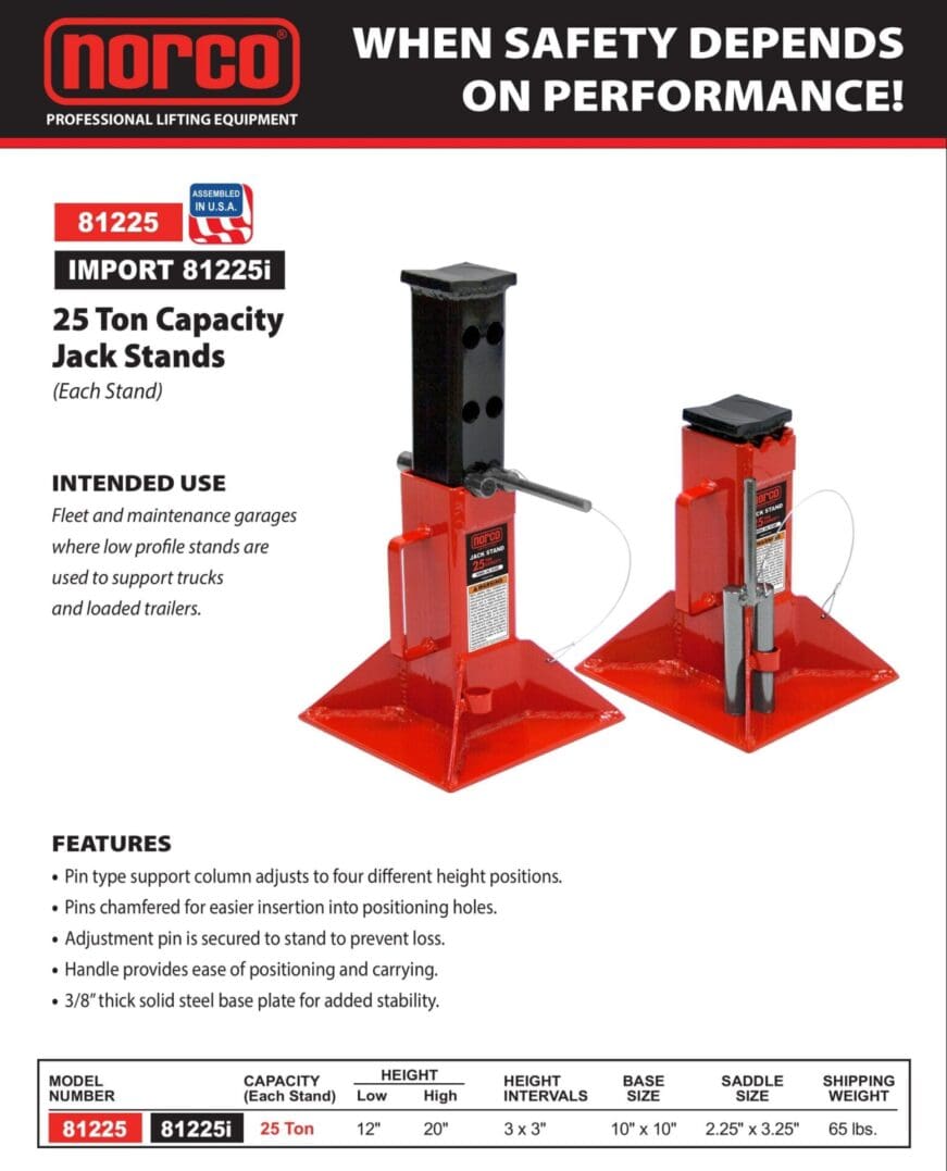 Jack Stands, 25 Ton, Pin Type, USA Made (Norco: model 81225)
