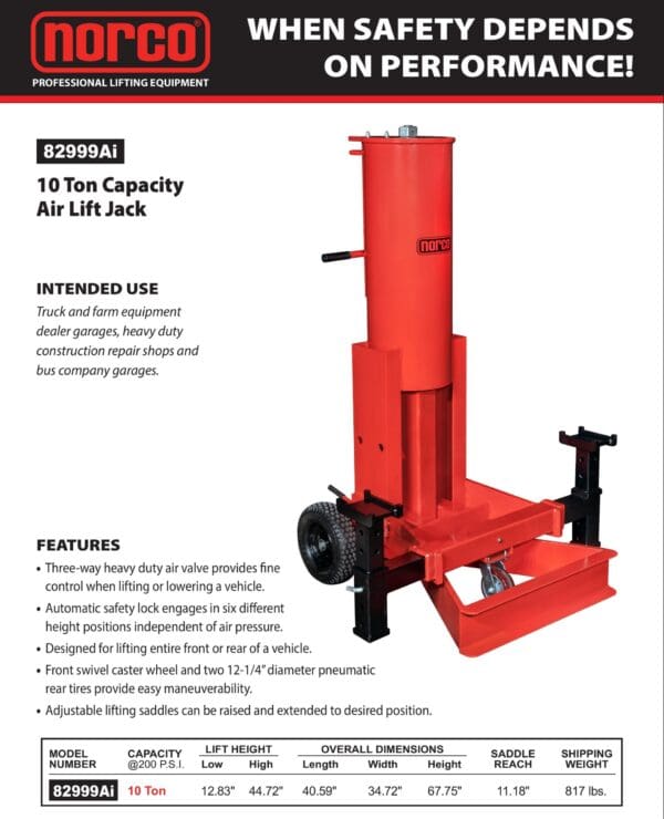 Air Lift Jack, 10 Ton, Portable (Norco: model 82990C)