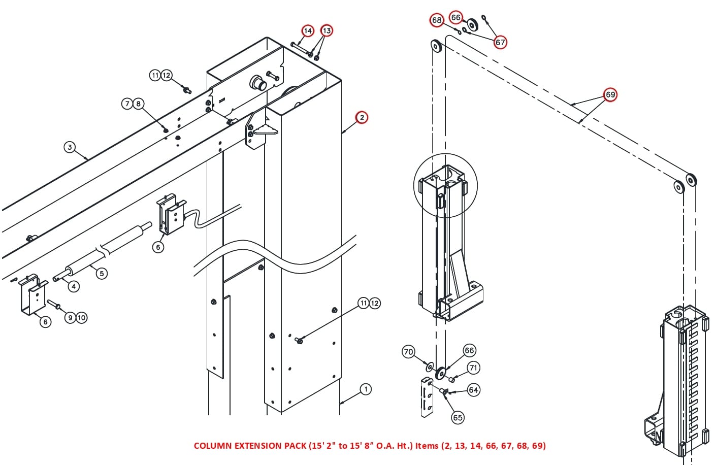 2 Ft. Column Height Extension Kit For Current Cl12A Series, Includes Two New Length Cables And All Necessary Hardware. When Purchased Separately From Lift, Serial Number And Lift Color Are Required To Place Order.