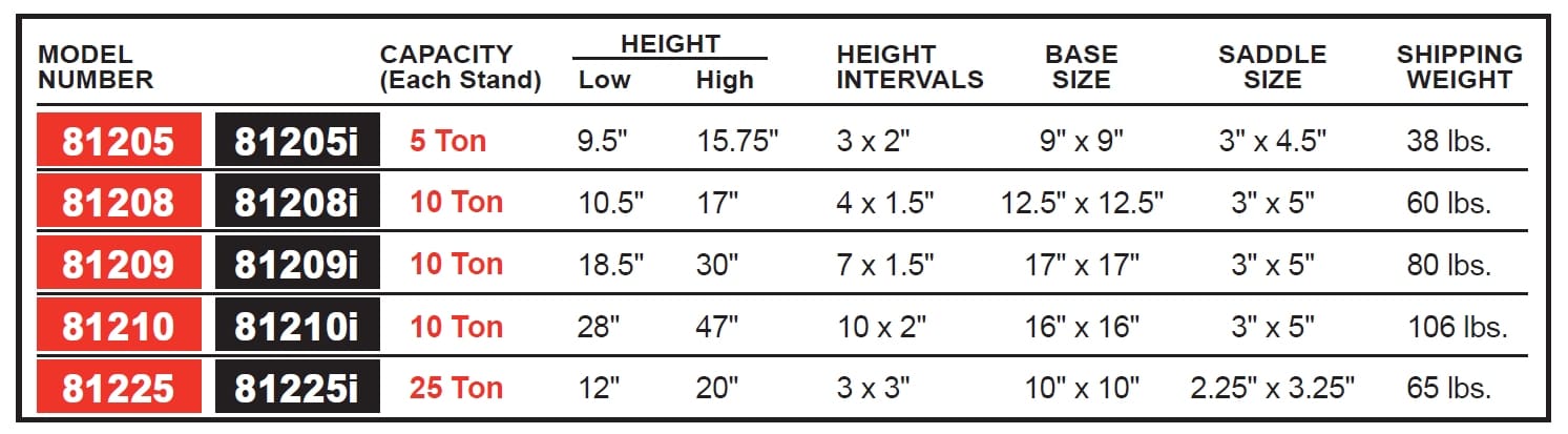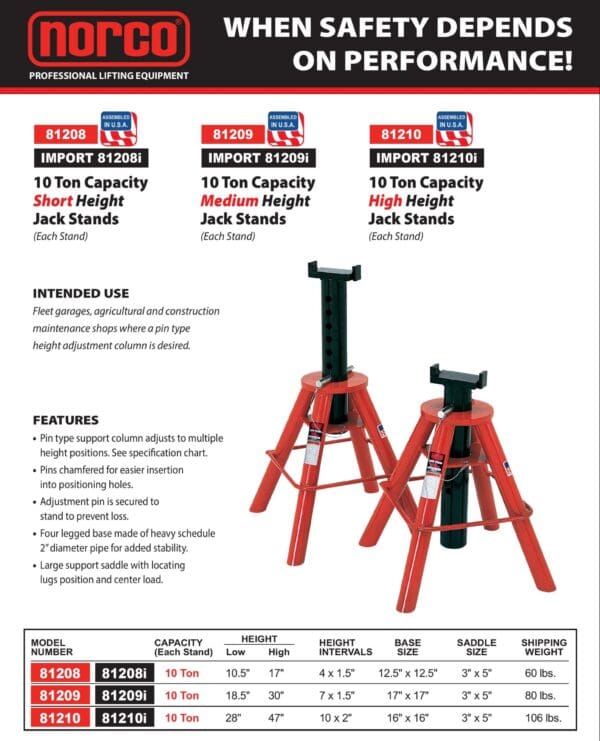 Jack Stands, 10 Ton, Pin Type, Medium Height, Imported (Norco: model 81209i)