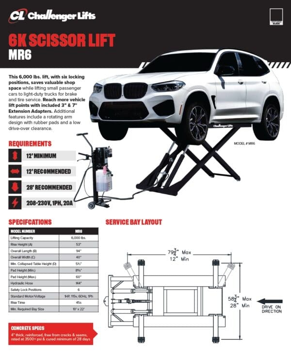 - 6,000 lb. lift capacity