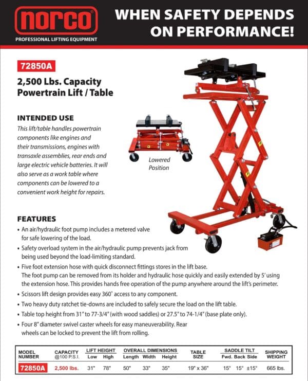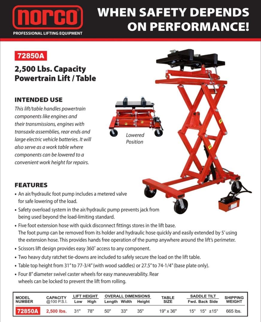 Lift Table, 2,500 lb. Capacity, EV Battery (Norco: model 72855)