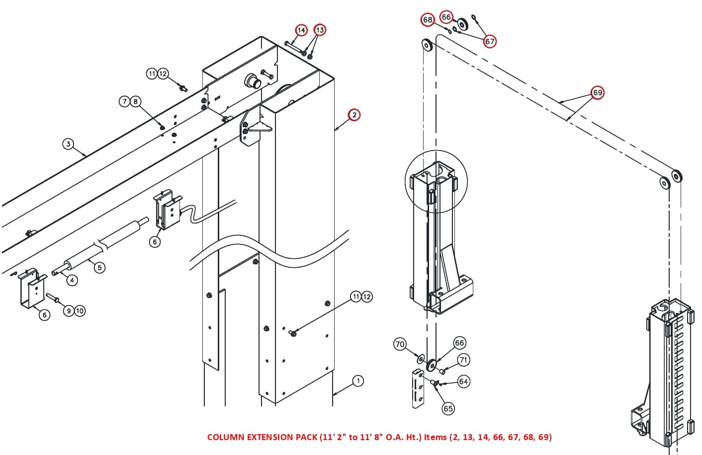 Standard Height Column Extension Kit For Current Cl10A Series, Includes Two New Length Cables And All Necessary Hardware.