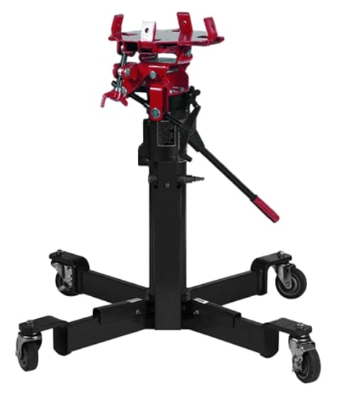 Challenger’s high-rise automotive transmission jacks feature a two-stage design: the first stage is 100% air-operated for speed, while the second is hydraulic for precise control. The swivel casters make for easy maneuverability, and a nylon “speed strap” is included to secure the load quickly and conveniently. The heavy-duty, acme threaded screws provide a more excellent bearing surface for easier tilt adjustments. The four quick-ratcheting brackets make the head-plate flexible and easy to use. The CLHM-HTJ features a 1,000 or 1,200 or 2,700 lbs. lifting capacity and four quick-ratcheting brackets.
