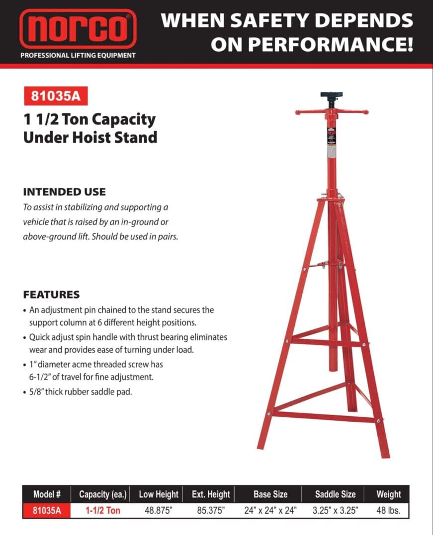 Under Hoist Stand. 3/4 Ton, with Foot Pedal (Norco: model 81034A)