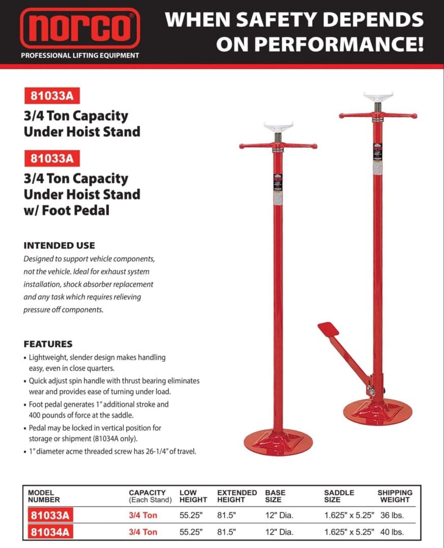 Under Hoist Stand, 1 Ton, Hydraulic Jack, with Wheels (Norco: model 81036A)